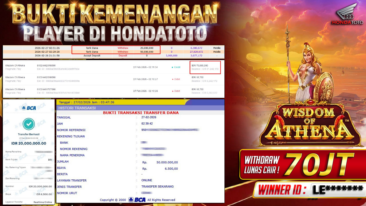 Bandar togel HONDATOTO merupakan bandar togel dan slot online yang membayar semua kemenangan member hingga lunas. Setiap pembayaran pada situs kami dilakukan dengan cara transfer ke rekening tujuan yang sudah di daftarkan pada situs togel online kami, Pembayaran hanya dapat di proses jika rekening yang di daftarkan telah valid dan dapat di transfer. Semua kemenangan member yang mendapatkan hadiah jackpot terbesar akan kami posting agar semua pemain dapat melihat bandar situs terpercaya HONDATOTO ini membayar semua kemenangan member hingga lunas. Setiap postingan yang kami posting akan kami lakukan sensor pada nomor rekening 4 digit dan nama rekening untuk menjaga privasi dan kerahasiaan member. Postingan Jackpot yang kami posting agar member atau pemain yang belum pernah bermain bisa melihat bandar togel Bukan Kaleng Kaleng Seperti HONDATOTO ini, Semua postingan jackpot yang kami posting dapat di lihat data keasliannya melalui nomor reff yang di tunjukan pada bank atau mbanking saat kita melakukan transfer.